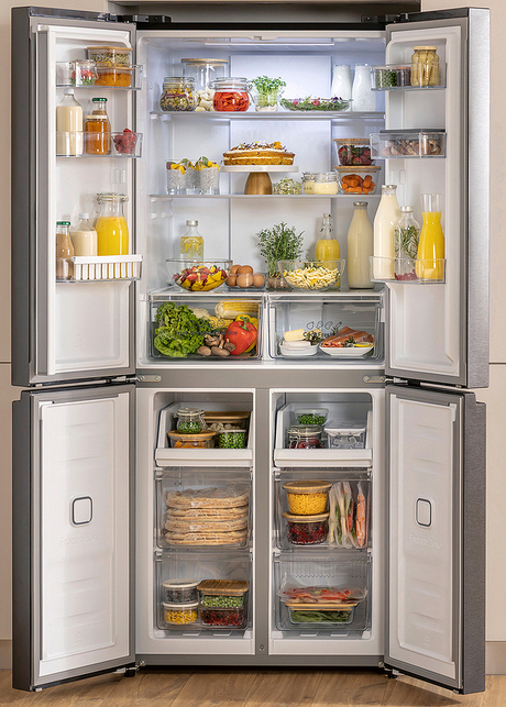 Gorenje schafft Platz durch intelligentes Kühlen. Mit seinen neuen Cross-Door Kühl-/Gefrier-Kombinationen wird der Stauraum flexibel. So lassen sich mit Convert FreshZone je nach Bedarf ein Fisch- oder Fleischfach in eine Obst- und Gemüseschublade umwandeln. >